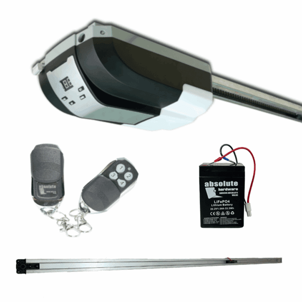 Upgrade your garage door with the ABSOLIFT Garage Door Motor, complete with a battery and rail. This powerful motor is designed to effortlessly lift garage doors weighing up to 600N, providing convenience and ease of use for your daily comings and goings.