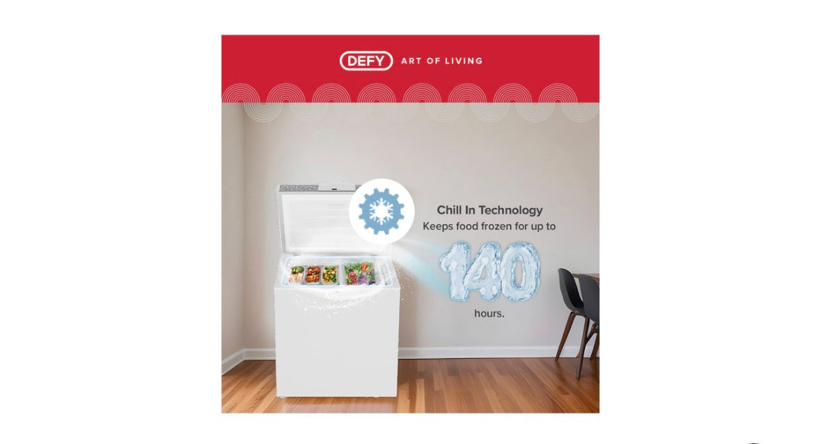 Maximise your food storage and minimise your energy bills with the Defy 195L Multimode Chest Freezer (DMF470). Designed for South African homes, this versatile deep freezer features Chill-In Technology to keep food frozen for up to 36 hours during power outages—perfect for load-shedding resilience.